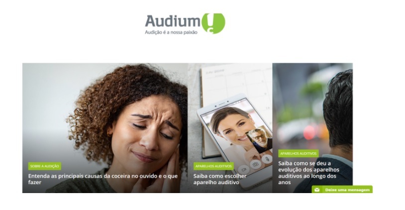 A rede de aparelhos auditivos Audium faz um bom uso dessa plataforma. Lá, eles produzem conteúdo sobre dicas de como cuidar bem da audição, informações sobre aparelhos auditivos e conteúdos ricos voltados para perda auditiva.